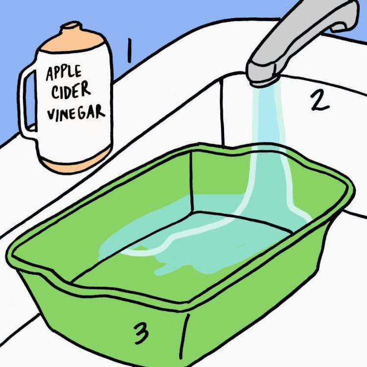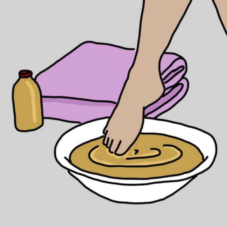 Jums tereikia pašildyti vandenį, o kai sušils, supilti jį į dubenį ir įmerkti į jį kojas. Įpilkite puodelį obuolių sidro acto ir įlašinkite kelis lašus mėgstamo eterinio aliejaus (pavyzdžiui, levandų). Pamirkykite kojas šiame mišinyje 30 minučių ir viskas. Atlikite šią procedūrą kartą per savaitę ir iš karto pamatysite skirtumą.