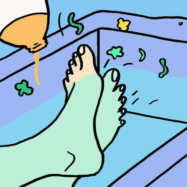 Naudokite šiltą vandenį, kad atvertumėte poras, ir druską kaip priešuždegiminę ir sutraukiančią priemonę. Jonai absorbuojami per pėdas, o jūsų kūnas pašalina toksinus. Jei vanduo patamsėja, tai reiškia, kad rezultatai pasiekti.