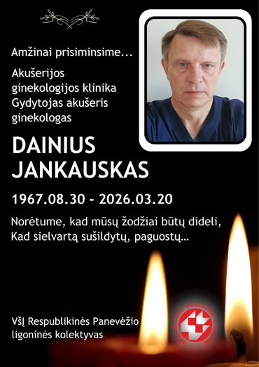 Respublikinė Panevėžio ligoninė praneša apie ligoninės Akušerijos ginekologijos klinikos gydytojo akušerio ginekologo Dainiaus Jankausko netektį. Gydytojui buvo 58-eri.
