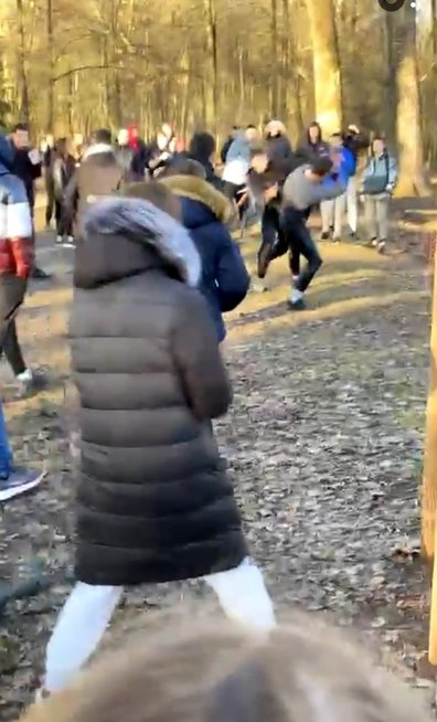 Toliau jie vėl pradėjo rėkti ir vienas pradėjo mušti kitą. Trenkė, spardė jam į galvą. Visi kiti stovėjo, žiūrėjo ir rėkavo.