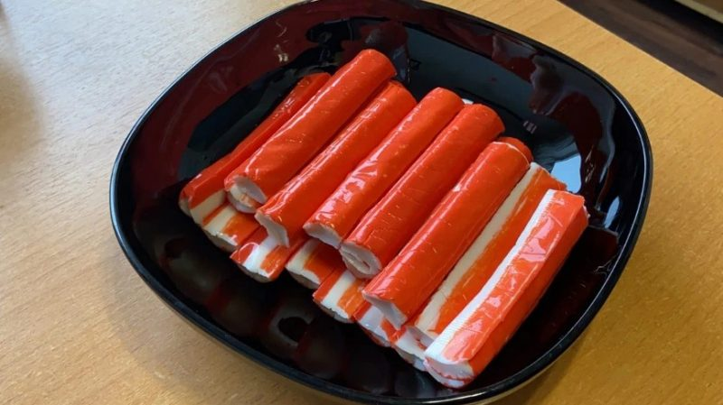 - krabų lazdelės, 400 g;