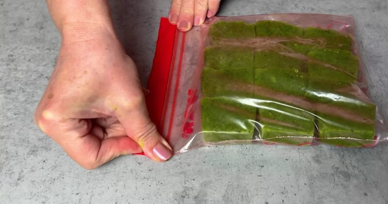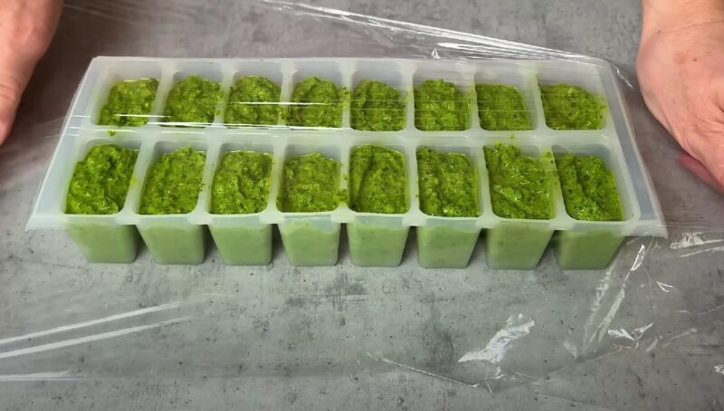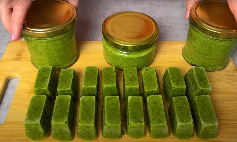 Žaliojo padažo ir šaldytų žalumynų kubeliais galima dėti į sriubas, karštus patiekalus ir net kepinius.